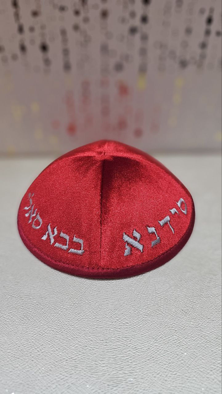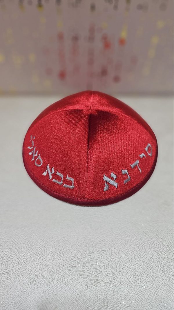 כיפה מרוקאית צבע אדום כיתוב בכסף
