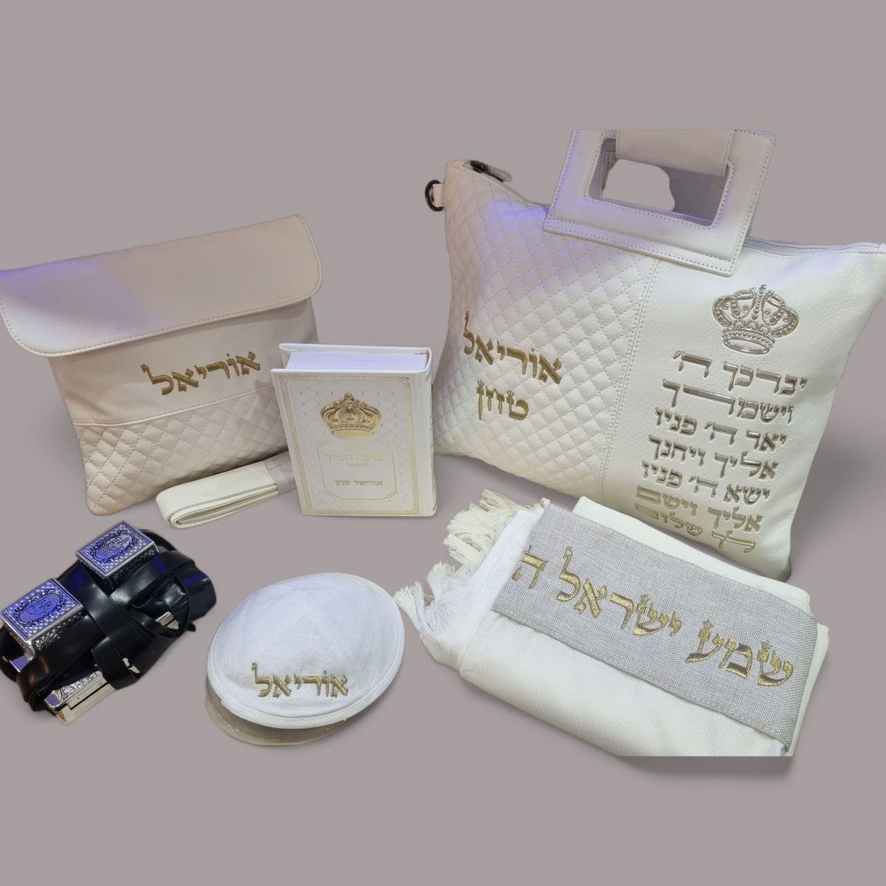 סט תיקים לטלית ולתפילין דמוי עור