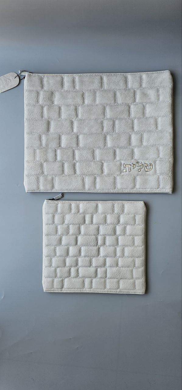סט כסויים מהודר דמוי עור צבע בטון דוגמת כותל עם אותיות בולטות בכסף